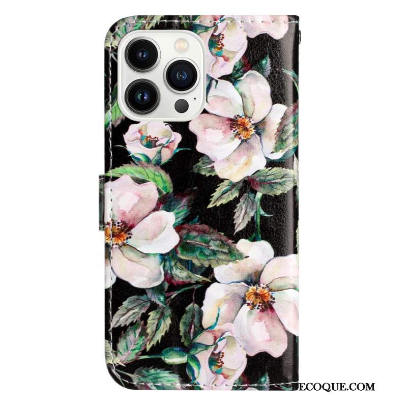 Etui Folio iPhone 16 Pro Kryształowa Piwonia Z Paskiem Etui Ochronne