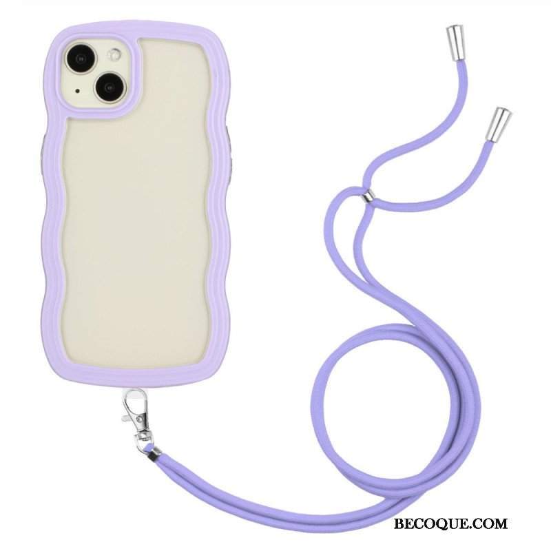 Skórzany Futerał do iPhone 15 Plus z Łańcuch Efekt Brokatu Z Paskiem